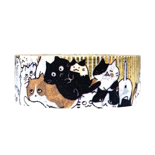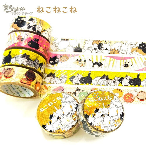 個性豊かな猫たちをShinzi Katohが様々なタッチで描く「ねこねこね」シリーズのマスキングテープ。ゴールドホログラム箔をあしらった華やかで楽しいデザインです。
