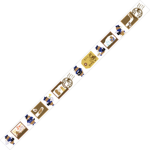 架空の郵便局・もぐら郵便局の切手ともぐらの郵便配達員がモチーフのマスキングテープです。