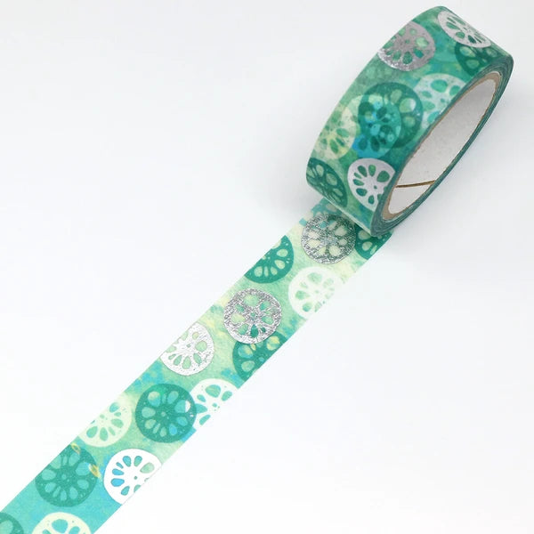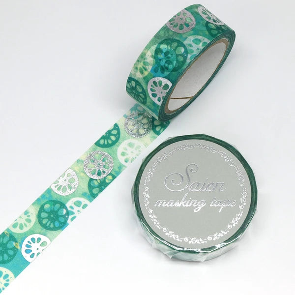 SAIEN マスキングテープ UR3014 レンコン 銀箔 15mm×7m巻き