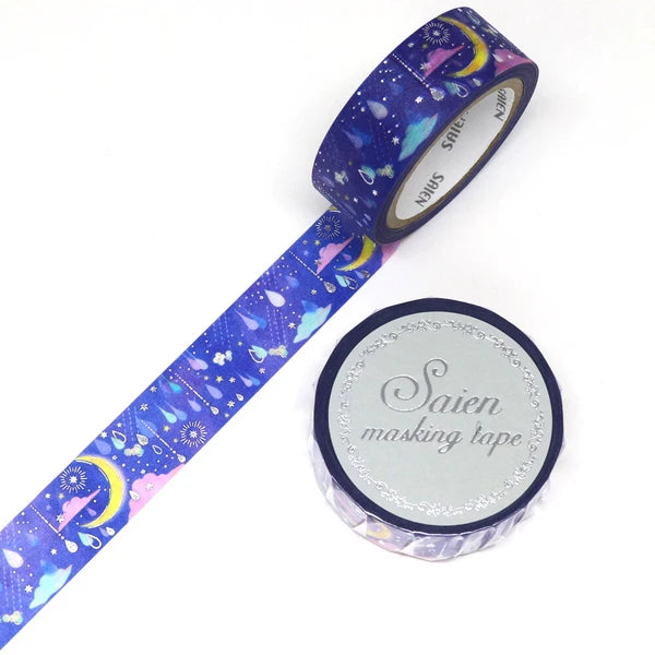 SAIEN マスキングテープ UR3033 月夜のしずく 銀箔 15mm×7m巻き